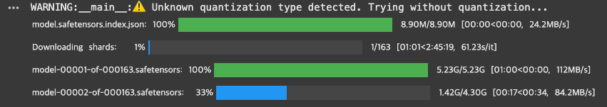 양자화 없이 모델을 사용하려 했지만 다운로드 시간이 너무 오래 걸리는 것을 확인 후 포기를 했다.