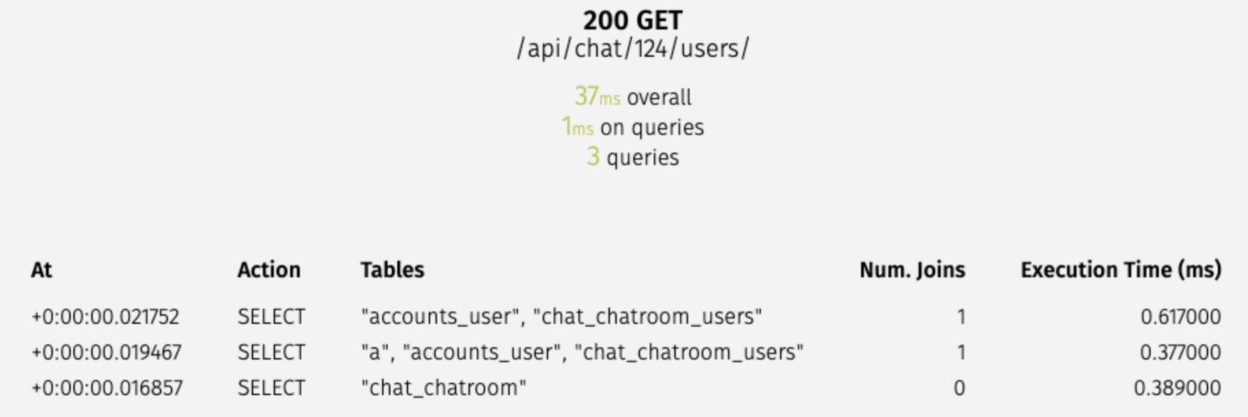 데이터베이스 방식: SQLite를 사용한 경우 37ms로 짧은 시간이 소요되지만, 3번의 쿼리가 발생함.